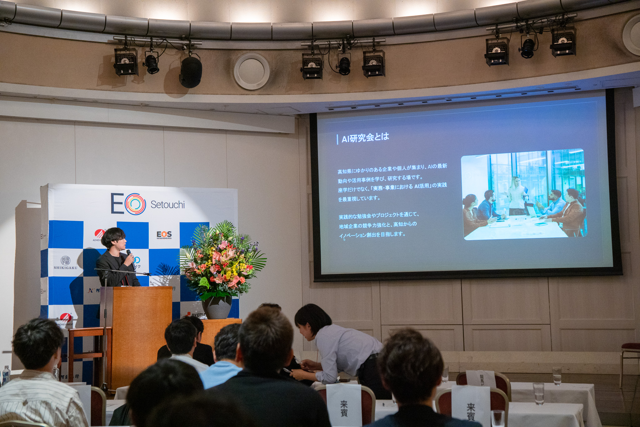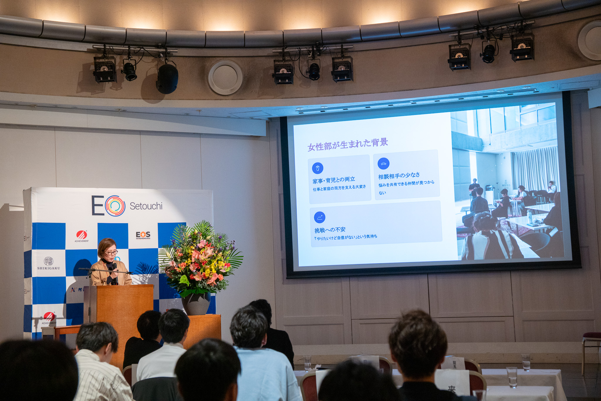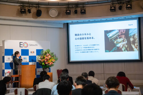 ランチセッションでは、EO Setouchiの高橋伸彰様と野田泰平様にご登壇いただき、「挑戦を力に変えるリアルストーリー」をテーマに、“逆境を乗り越える折れない矢の作り方”について力強い言葉でお話いただきました。挑戦に必要なメンタルの在り方について深く共有され、参加者は大きくうなずきながら耳を傾けていました。大好評の学びの時間となりました。